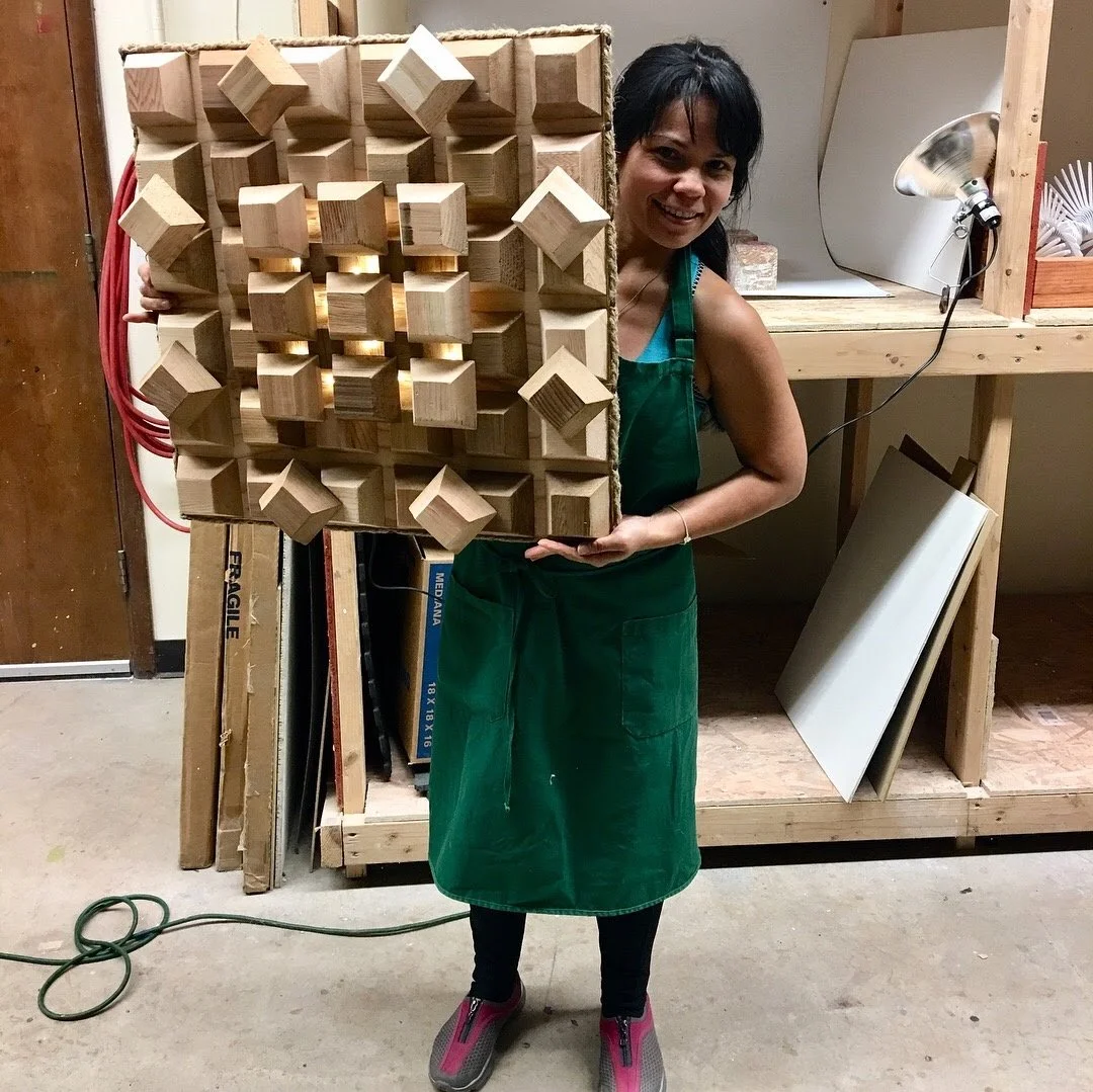 A nightlight wall art piece crafted from organic materials, with a thoughtfully designed pattern that allows the light to reveal a subtly different perspective when illuminated.